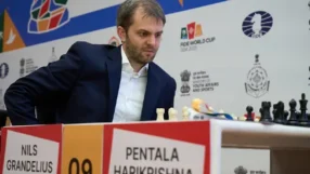 Nils Grandelius. Foto: FIDE/Eteri Kublashvili Nils Grandelius höll hela vägen till fjärde omgången i World Cup i Goa, där det till slut blev respass mot indiska stjärnan Pentala Harikrishna efter...