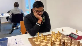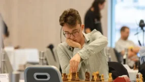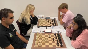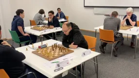 Mötet Erik Blomqvist–Axel Falkevall där den senare vann med svarta pjäserna. Foto: Vladimir Poley Hotel Stockholm North by First Hotels young talents, 22–26 sep: GM [Live & resultat] IM [Live...