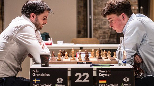 Tiger Hillarp hade svart mot Mads Andersen och det partiet slutade remi. Ett balanserat och välspelat parti från både spelare.