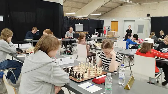 Sara Ostafiev har imponerat med 3 av 3. Just nu delar hon ledningen Ane Elisabeth Jacobsen, Norge och Lisa J Xin, Färöarna. Ane och Lisa kommer att mötas i fjärde ronden, och för Sara väntar tabellfyran Eloisa Lalluka, Finland.
