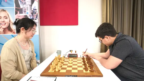 Tan Zhongyi förlorade ett vilt parti mot Yagiz Kaan Erdogmus. som anslöt sig till Rapport och Javokhir Sindarov i ledningen.