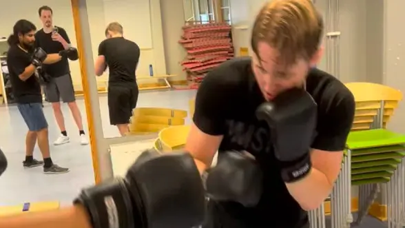 – Haha, nej nej. En boxningstränare. Björn Karlsson heter han och han har kört hårt med oss. Första träningspasset var på knappt två timmar med enbart boxning och styrka, Jag tror aldrig haft så mycket träningsvärk. Själv tyckte Björn att vi bara smygstartat lite…