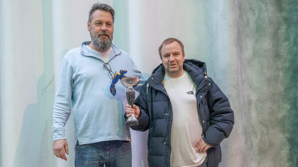 Lagledarna i HASK, från vänster: Stefan Håkansson och Patrik Nilsson. Bilden är från prisutdelningen för Superettan 24/25, bronset då blev till skånskt guld nu! Foto: Lars OA Hedlund