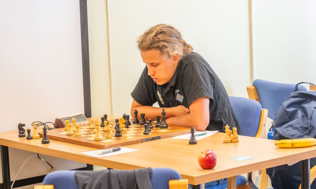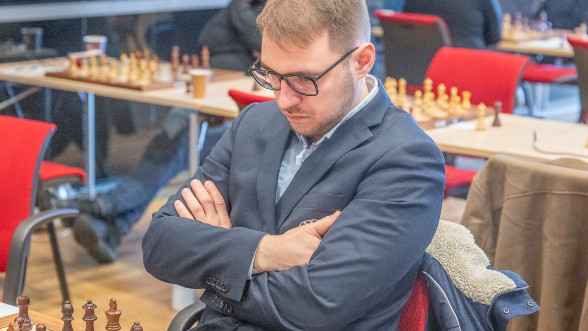 Då GM Tiger Hillarp Persson, som fram till tisdagens spel bara tappat en halva, remiserade sitt parti så tog sig IM Axel Falkevall jämsides efter en seger mot Lavinia Valcu. Och är just nu bäste svensk. Då han har tre poäng precis som Tiger Hillarp, men marginellt bättre särskiljning (vilket kanske inte betyder så mycket i just detta läge).