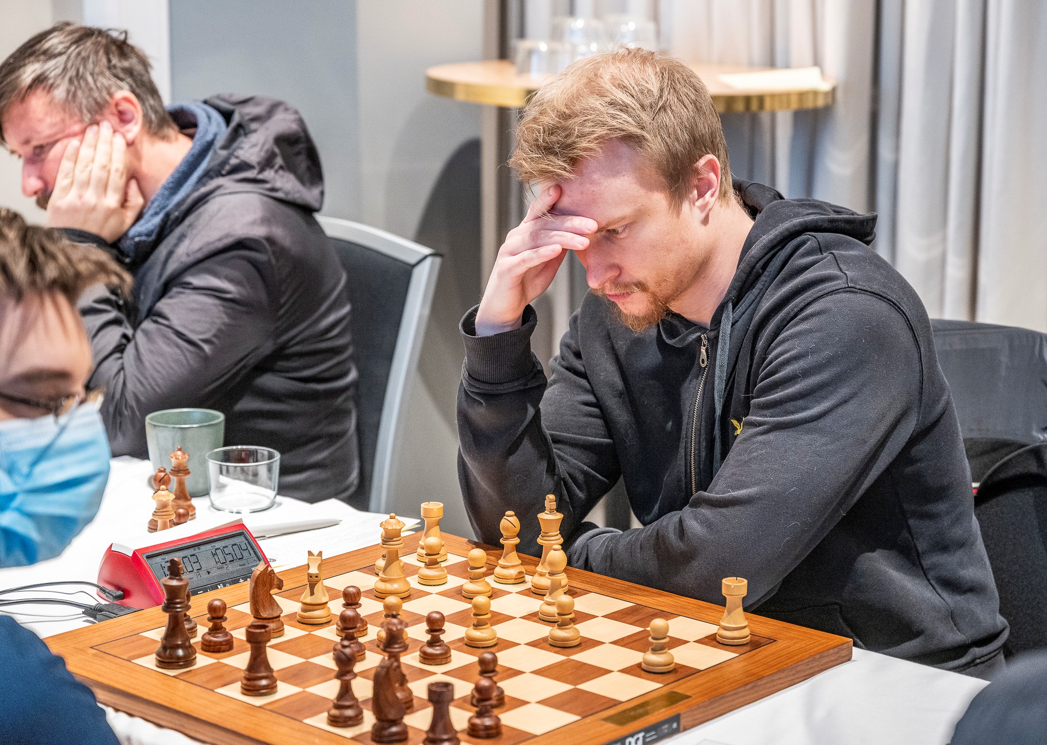 3) FM Deniz Arman, Växjö SK 4) GM Tiger Hillarp, Växjö SK 5) FM Arvin Rasti, SS 4 Springare 6) FM Yu Liu, Australien och 7) IM Ludvig Carlsson, Västerås SK.