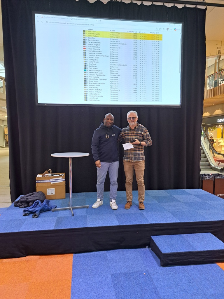 2:a kom Daniel Bergdahl från Manhem och 3:a kom Admir Kadunic från Notting Hill. Väldigt kul också att se så många spelare som inte är med i någon schackklubb spela sin första schackturnering i Nordstan!