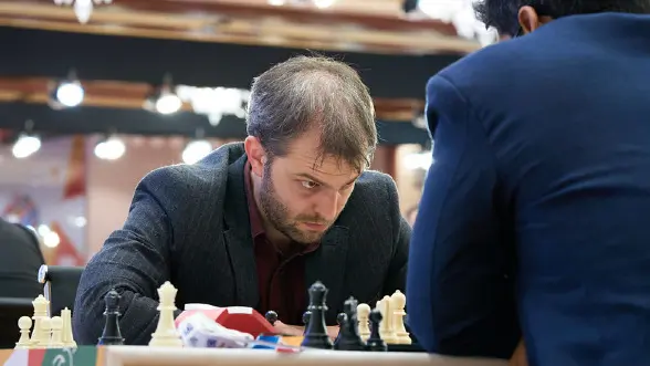 En fokuserad Nils Grandelius under onsdagens parti mot Pentala Harikrishna i World Cup. Foto: FIDE/Eteri Kublashvili