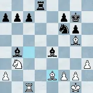 När Nils Grandelius – som spelade med svarta pjäserna – tog b-bonden efter Pentala Harikrishnas oförsiktiga manöver 20.b4 21.Sb3 var datorn optimistisk. Men det var subtila drag som behövde hittas, och det de var sannerligen inte lätt att finna dem i ställningen här bredvid.