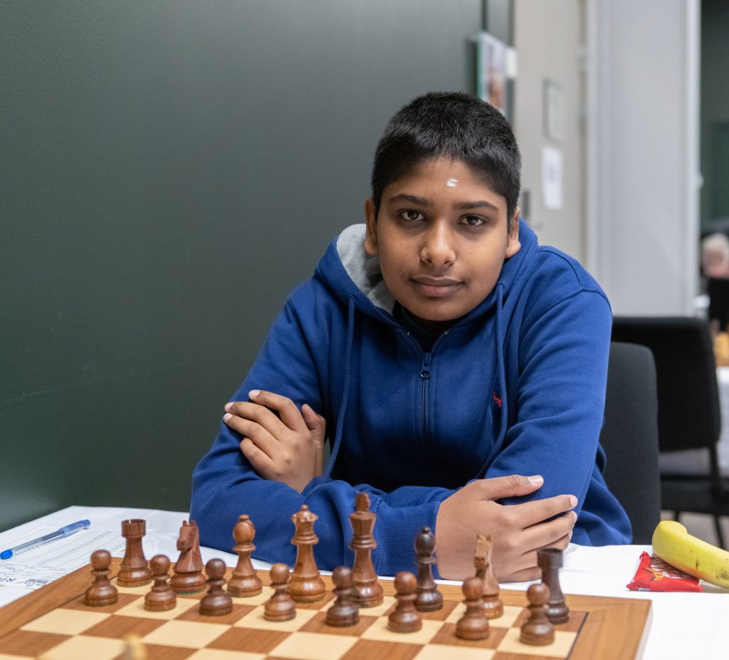 12-årige FM Pranav Anand besegrade sjätterankade GM Sebastien Maze. Foto: Lars OA Hedlund.