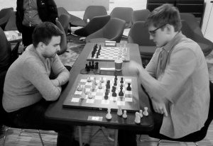 Mejselgatan ligger några minuters promenad från Malmö C, men för några år sedan fanns den inte utritad på kartorna. Industriområdet var förmodligen stängt för allmänheten. I en fräsch kontorslokal spelar dock Kristineberg SK sina hemmamatcher i div II.8 sedan ett par år tillbaka, och som trettondagstradition arrangeras en snabbschacksturnering. 2019 samlades ett 20-tal barn i ena änden av lokalen, med priser, applåder och beröm till samtliga, i andra änden gjorde 16 spelare upp om förstapriset på 3 000 kr. Allt avgjordes i sista ronden på bord 1 mellan Drazen Dragicevic (till vänster på bilden med de vita pjäserna) och Martin Jogstad, båda LASK. Vinnaren skulle kamma hem förstapriset, vid remi skulle däremot fältets två stormästare Axel Smith och Stellan Brynell gå förbi. I en låst ställning spelade både följaktligen på vinst och till sist uppstod följande ställning.