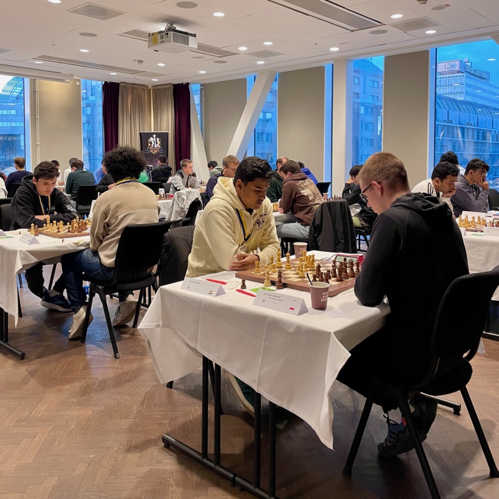 På bord 1 uppstod en lite udda ställning. FM Frederick Gordon Waldhausen, Skottland satt med pjäs för tre bönder mot tredjerankade GM Xiangyu Xu från Kina. Detta med damer och varsitt torn kvar på brädet. Dock hade den kinesiske stormästaren fyra (!) förenade fribönder på samma sida av brädet, kungsflygeln. Vilket visade sig vara mer än tillräckligt…