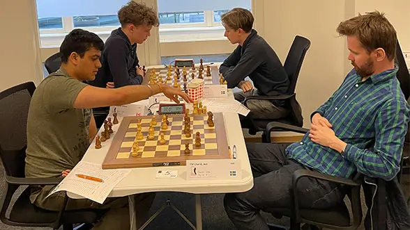 Efter fyra ronder är det blågult i topp i såväl stormästargruppen som IM-gruppen.