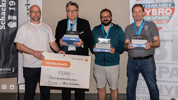 Resultatet för Diabetesdraget 2025 blev hela 43 040 kronor. Ett mycket uppskattat bidrag från svenska schackspelare till den viktiga diabetesforskningen.