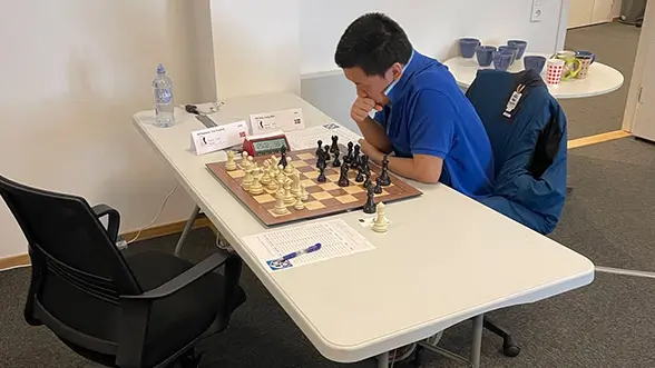Vidar Seiger lyckas klamra sig fast i den absoluta toppstriden i IM-gruppen i Hotel Stockholm by First hotels young talents som spelas i Upplands Väsby.
