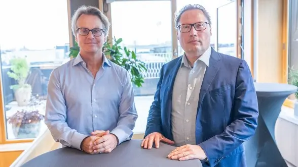 FM Nicolaj Zadruzny och IM Jonas Barkhagen för Lagerkvist segrade i det andra Företagsmästerskapet. Foto: Lars OA Hedlund